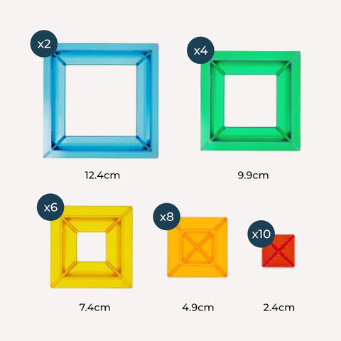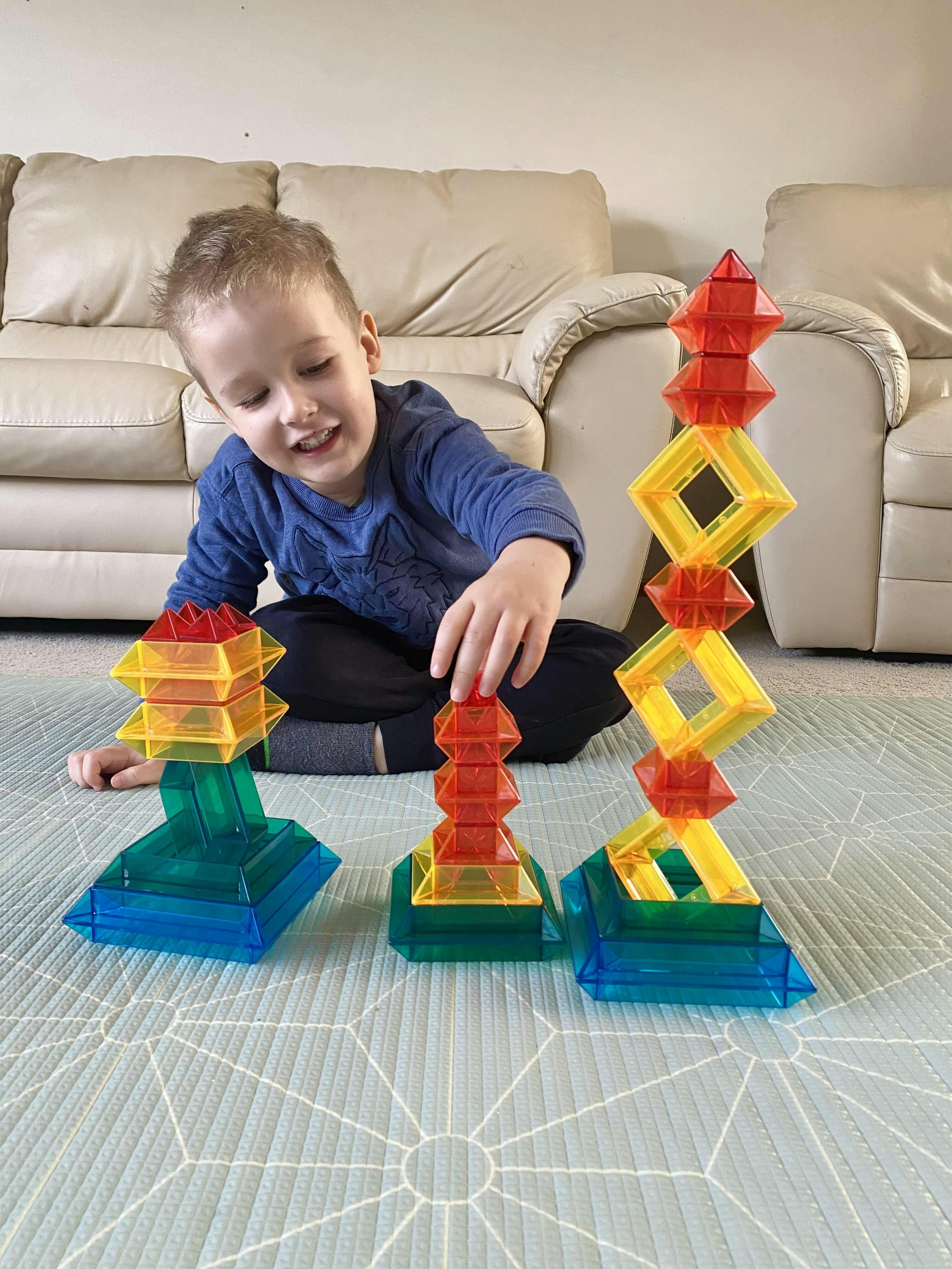 30 pieces (+ 2 FREE stands) of translucent toys that make perfect light table blocks.