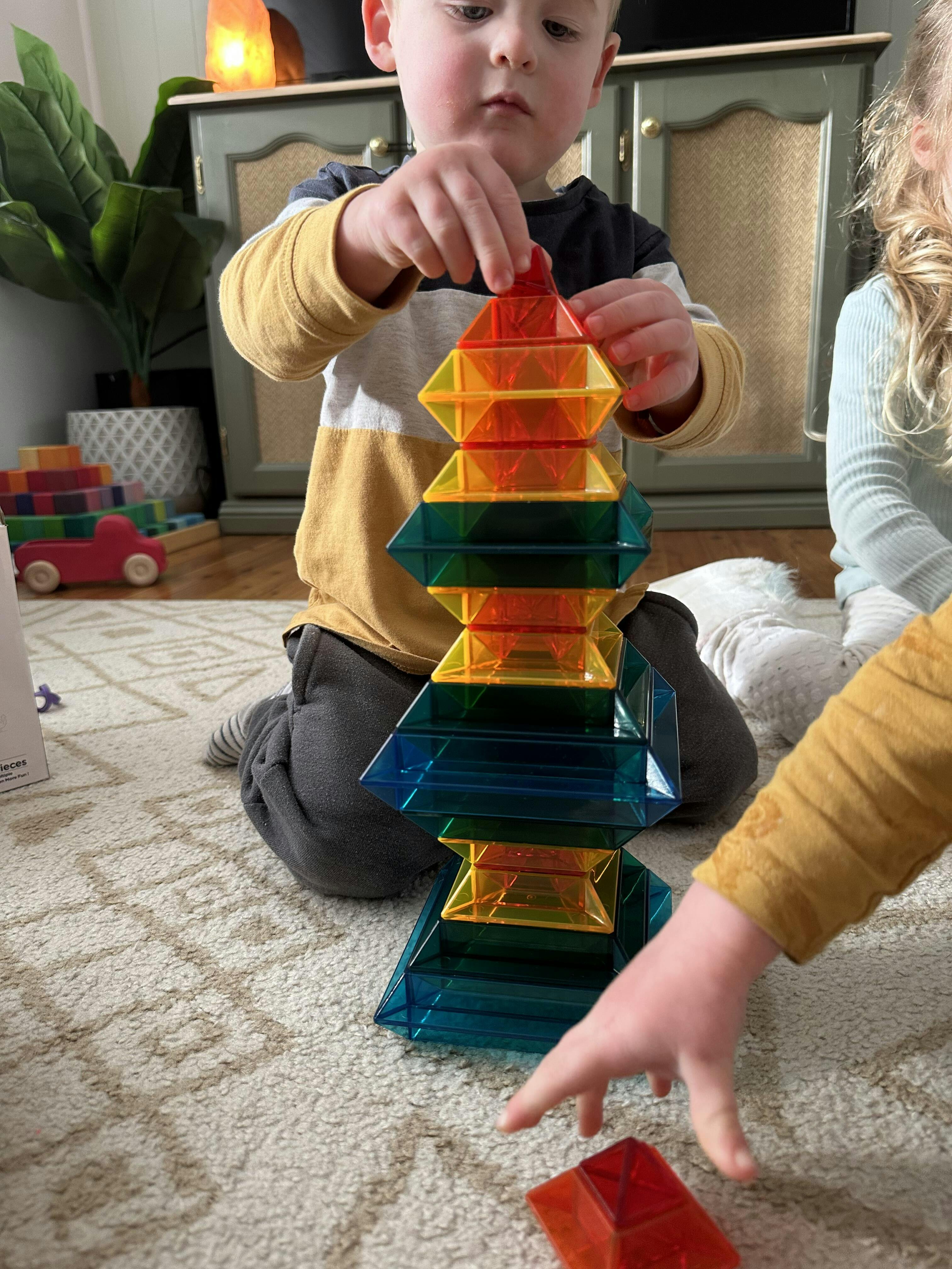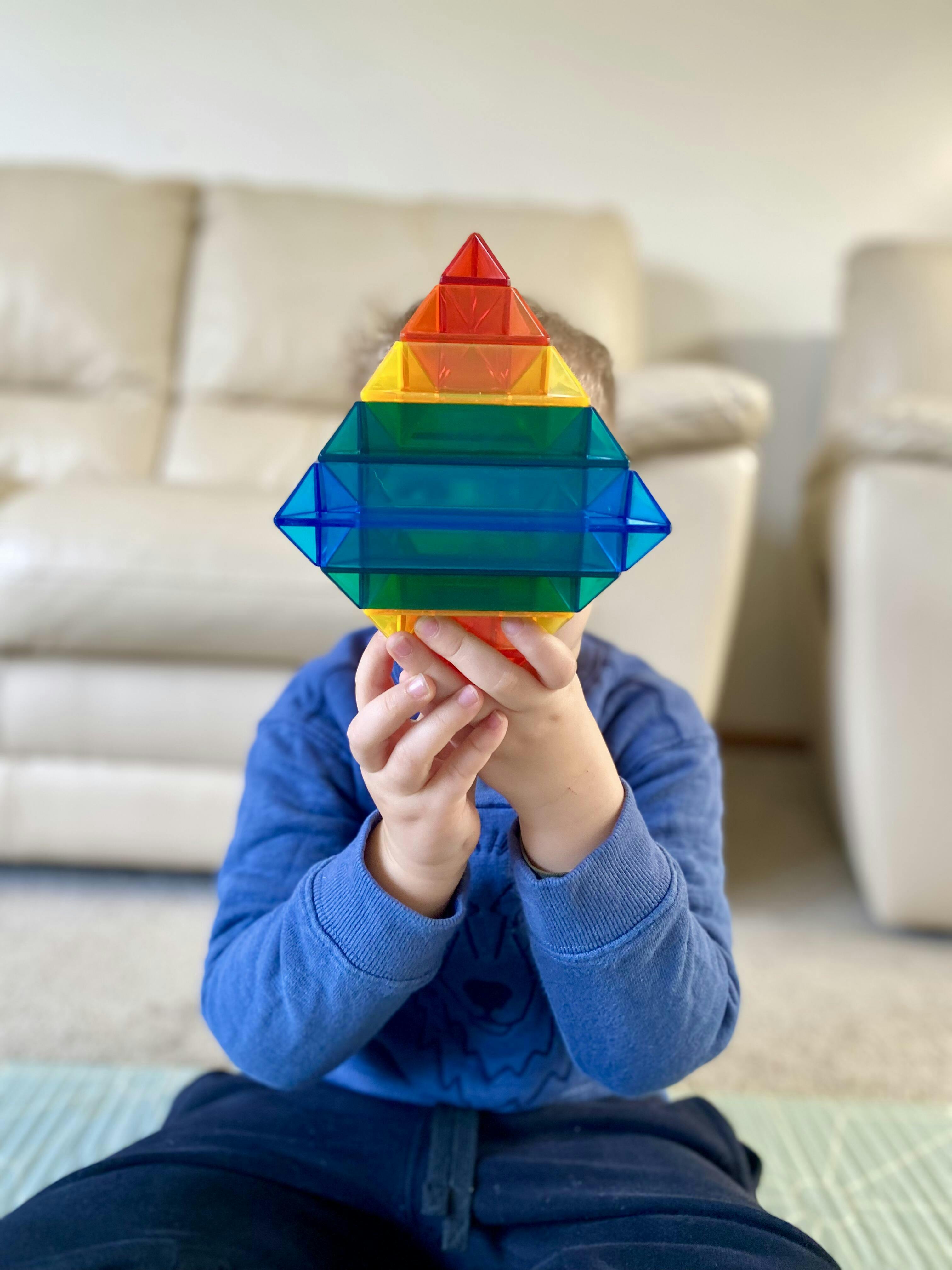 The Rainbow Pyramid makes great light table toys. It looks equally stunning under direct sunlight. Use the pieces to create delightful rainbow reflections, or for tracing activities and sensory play.